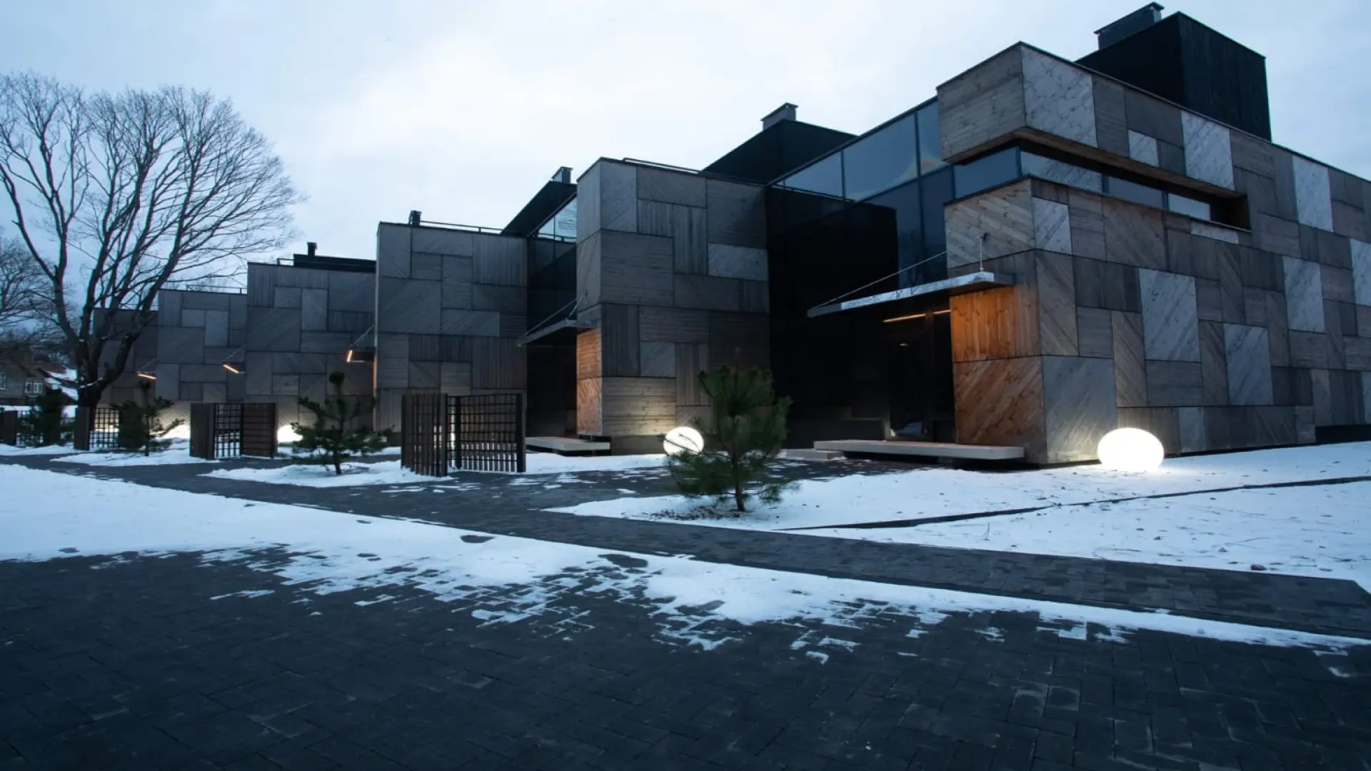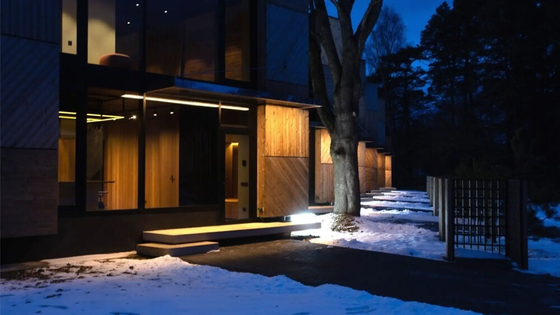 Nestled in a serene environment, the houses exhibit a modular design that offers both privacy and communal harmony. Strategic lighting elevates the architectural features, creating a dance of light and shadow that evolves from day to night.