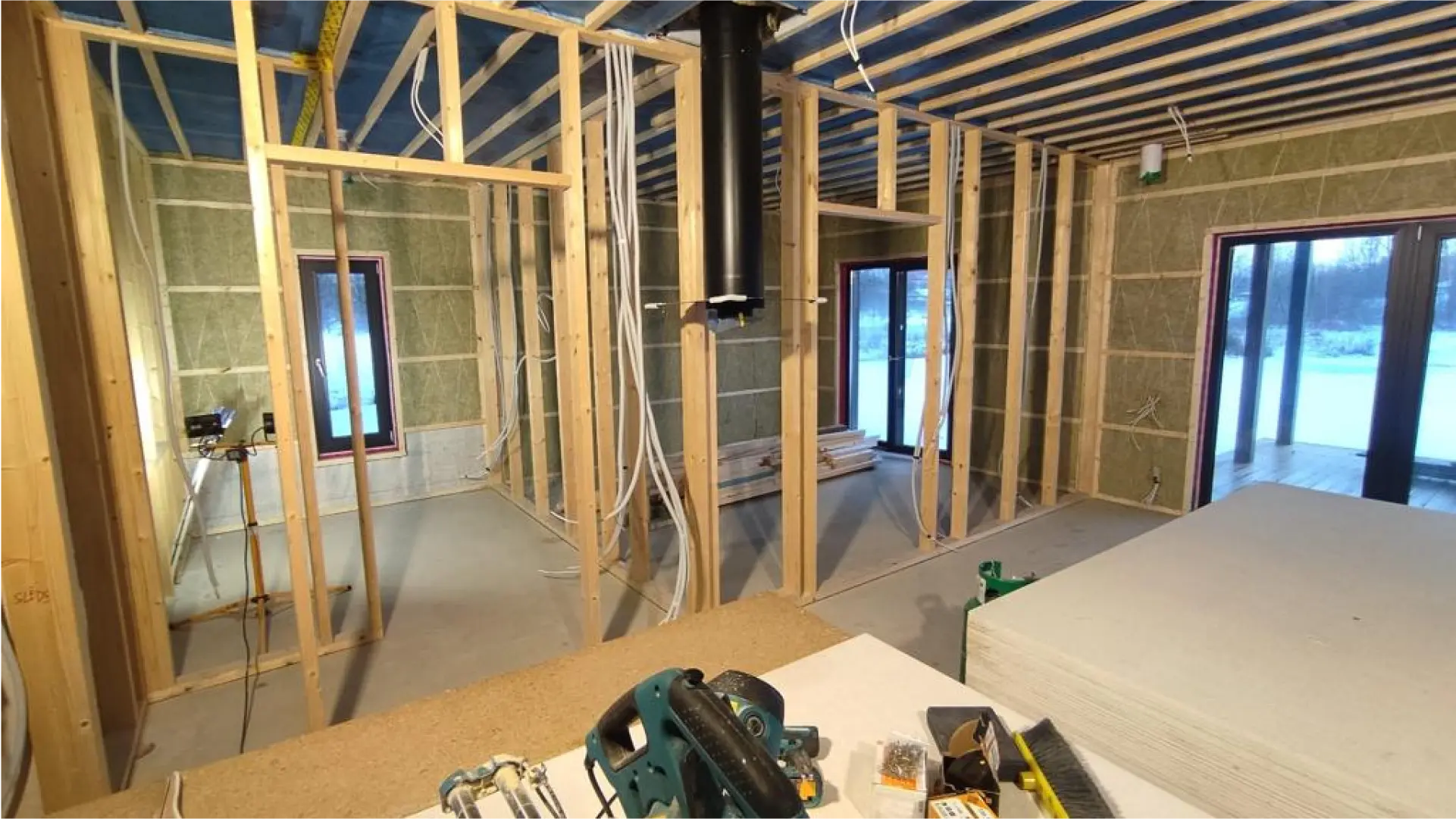 The interiors exemplify modern open-plan living, with expansive windows fostering an abundance of natural light and framing picturesque views of the verdant landscape. Innovative insulation techniques and state-of-the-art amenities ensure year-round comfort, while the choice of high-quality, sustainable materials echoes the commitment to environmental stewardship.