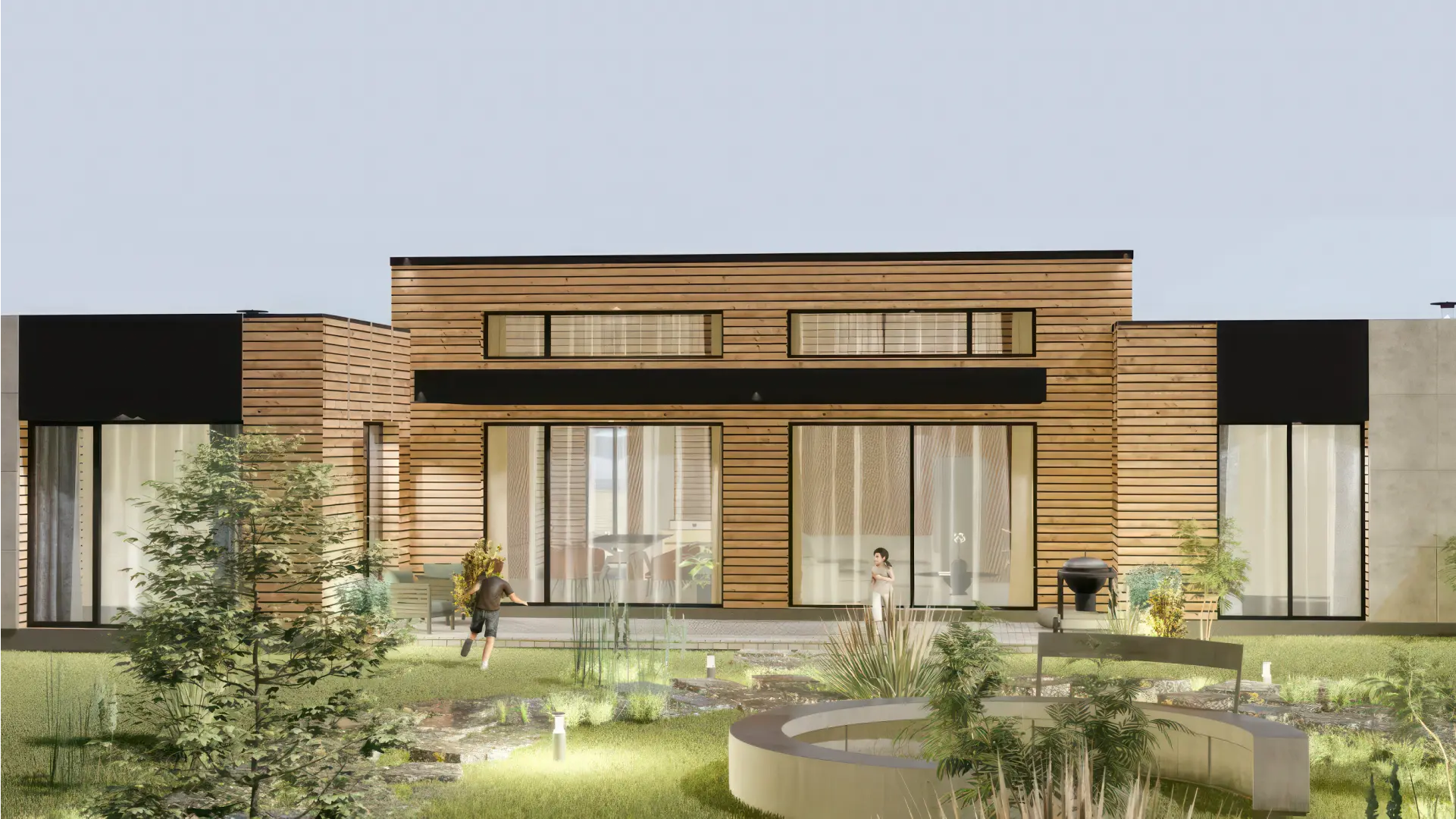 The exterior of the Marupe Private House exudes a contemporary charm with clean lines, a warm wooden façade, and expansive windows that invite natural light while providing sweeping views of the lush landscape. This architectural gem offers a variety of configurations, each featuring open-plan living areas, high ceilings, and premium finishes. The heart of the home, the kitchen, is appointed with top-of-the-line appliances, custom cabinetry, and designer fixtures, seamlessly transitioning into the dining and living areas for an inclusive living experience.
